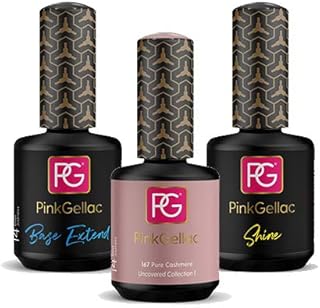 Pink Gellac 3er Set Shellac Farbe UV/LED 15ml + Base Coat 15ml + Top Coat 15ml Gel Nagellack Nail Polish 34 Sets zur Auswahl (Pure Cashmere)