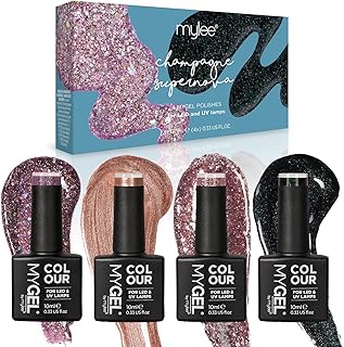 MYGEL by Mylee Glitter Gel Nagellack Set 4x10ml - UV/LED Einweich-Nagelkunst Maniküre Pediküre für den professionellen, Salon- und Heimgebrauch - langlebig und einfach anzuwenden