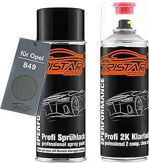 TRISTARcolor Autolack 2K Spraydosen Set für Opel 849 Stahlgrau Metallic/Iron Gray Metallic Basislack 2 Komponenten Klarlack Sprühdose