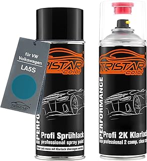 TRISTARcolor Autolack 2K Spraydosen Set für VW/Volkswagen LA5S New River Blue Metallic/New Riverblue Metallic Basislack 2 Komponenten Klarlack Sprühdose