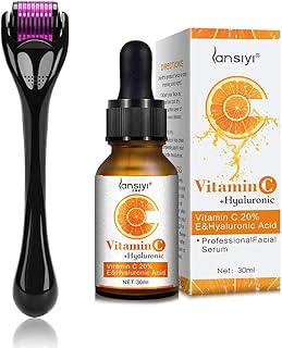 Derma Roller Microneedling Kit für Gesicht 0,3 mm und Vitamin C Serum mit Hyaluronsäure Gesichtsserum – AG540 Titanium Microneedle Bio-Vitamin C 20% Serum Micro Nadeln Akne Narben Anti-Aging Falten