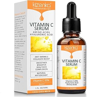 Vitamin C Serum mit Hyaluronsäure, kizenka Vitamin C Serum für Gesicht, Anti-Aging mit 20% Vit. C Falten Gesichtsserum Aufheller Entferner Sonnenfleck Gesichtspflegeserum, Geeignet für Alle Hauttypen