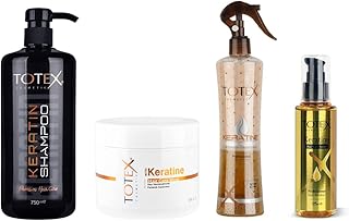TOTEX ® KERATİN Therapy 4er Set - Shampoo (750ml) - Haarkur Maske (500ml) - 2 Phasen Conditioner Spülung Spray (400ml) - Haar Serum (125ml) spezielle Keratin-Serie