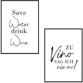 Set - Poster Bild DIN A4 - Zu Vino sag ich nie no Bilder - Die Geschenkidee für Weinliebhaber - Plakat Spruch lustiges Wein Geschenk Wine Sprüche Typografie schwarz weiß Küche Wohnzimmer Deko
