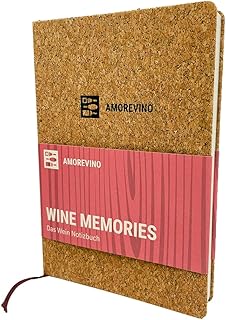 AMOREVINO Wein Notizbuch, Weinwissen und Verkostungsnotizen zum Bewerten von Wein, Wein Geschenk für Weinliebhaber, A5 Format, Buchumschlag Kork