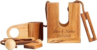 Casa Vivente Flaschenpuzzle aus dunklem Holz mit Gravur – Personalisiert mit Namen, Datum oder Wunschtext – Geschenke für Weinliebhaber