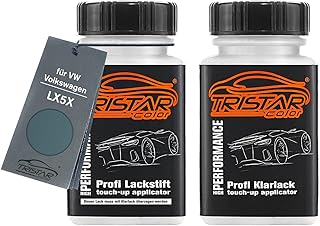 TRISTARcolor Autolack Lackstift Set für VW/Volkswagen LX5X Spaerenblau Metallic/Bleu Cascade Metallic Basislack Klarlack je 50ml