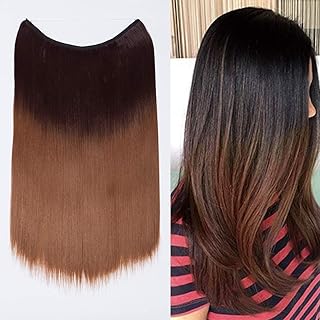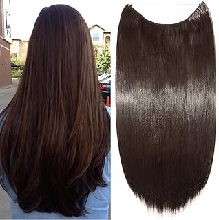 Haarteil Extensions 1 Tresse günstig Haarverlängerung Synthetische mit Draht Haarextensions für Haarverdichtung Glatt Hair 20"(50cm)-90g Hellbraun/Kastanienbraun
