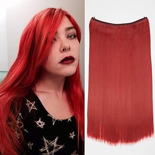 Haarteil Extensions 1 Tresse günstig Haarverlängerung Synthetische mit Draht Haarextensions für Haarverdichtung Glatt Hair 20"(50cm)-90g Rubinrot