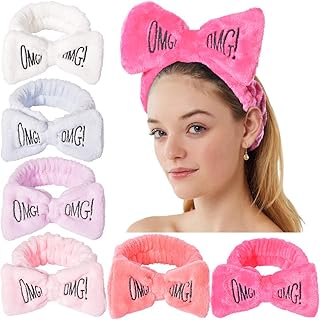 Spa Stirnband Koralle Fleece Gesicht Make-up Stirnband Turban Bowknot Bogen Kosmetik Stirnband zum Waschen Gesicht Bogen Stirnband für Dusche Brief Frottee Stirnbänder für Frauen Haarband 6 Stück