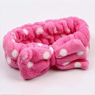 Idiytip Frauen Flanell Punkte Bogen Knoten Waschen Gesicht Stirnband Weiches Make-Up Kosmetisches Haarband,Rose Red