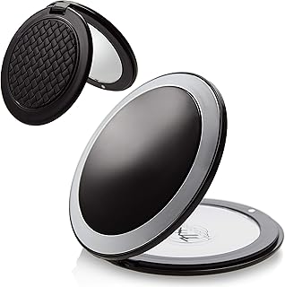 Taschenspiegel Rund zum Klappen: Make Up Spiegel klein - Makeup Spiegel 8,5 cm, normal und 7-fache Vergrößerung (zweiseitig) - Edler Reise Klappspiegel aus Kunststoff in Schwarz, Fantasia
