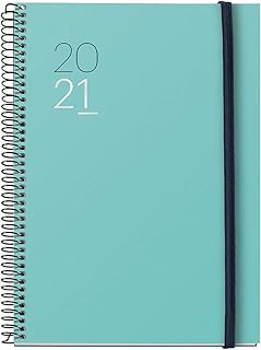 Miquielrius – Jahresplaner 2021 Chester – Castellano, Wochenansicht, Größe 155 x 213 mm, Papier 70 g, Einband aus Kunstleder, Aquamarin