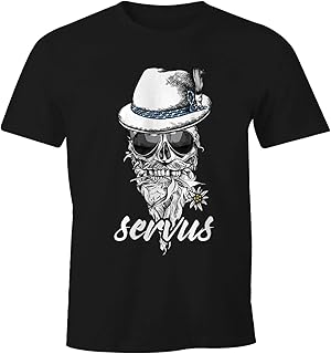 Herren T-Shirt Totenkopf Filzhut Bayern Skull Blume Oktoberfest servus Fun-Shirt