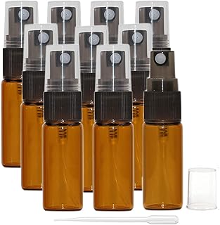 Yalbdopo 10 x 5 ml bernsteinfarbene Glas-Sprühflaschen, feiner Nebel, Parfüm-Zerstäuber, nachfüllbar, Aftershave-Reise, tragbare, leere Sprühflasche, Aromatherapie, zum Ausgehen