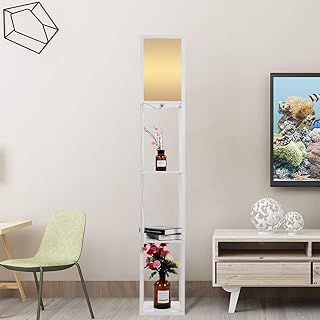 Einfarbig Retro Stehlampe, Elegante Regal Stehleuchte aus Holz, Stehlampe mit Regalen für Wohnzimmer und Schlafzimmer (Weiß)