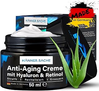 50ml Männer Anti Aging Creme & Antifalten Creme - BIO Aloe Vera + Hyaluronsäure, Made in Germany - Vegane Gesichtscreme, Tagescreme & Nachtcreme - Retinol, Hyaluron, Taurin, Vitamin A C E