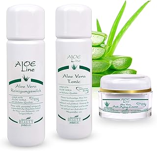 Aloe Vera Hautpflege Set - Aloe Vera Reinigungsmilch (1 x 200 ml) + Aloe Vera Gesichtswasser (1 x 200 ml) + Aloe Vera 24h Anti Aging Creme (1 x 50 ml) - Made in Germany