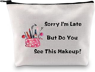 POFULL Kosmetiktasche mit Aufschrift "Sorry I'm Late", Geschenk für Make-up-Liebhaber, Geschenke für Make-up-Künstler